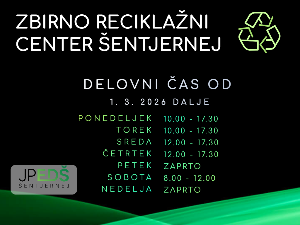 Do nadaljnjega prevzemamo do 2m3 odpadkov na eno gospodinjstvo, registrirano v občini Šentjernej.