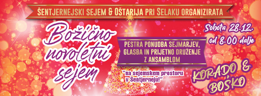 V soboto, 14. decembra lepo vabljeni na prednovoletni sejem v Šentjernej. Dogajanje bo pestro, idej za daril še več, pogreli pa se boste lahko tudi ob kakšnem čaju ali kuhanem vinu. Vabljeni! Uporabniki Facebooka se lahko 'pofočkate' na FB dogodku sejma.